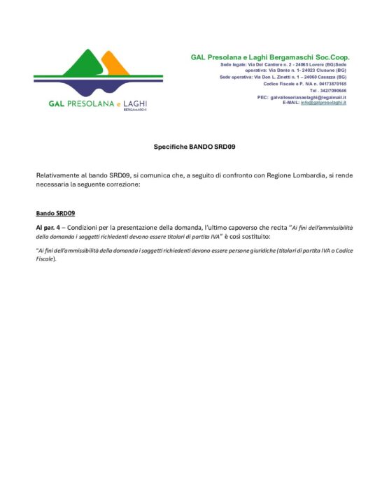 Aggiornamento Bando SRD09
